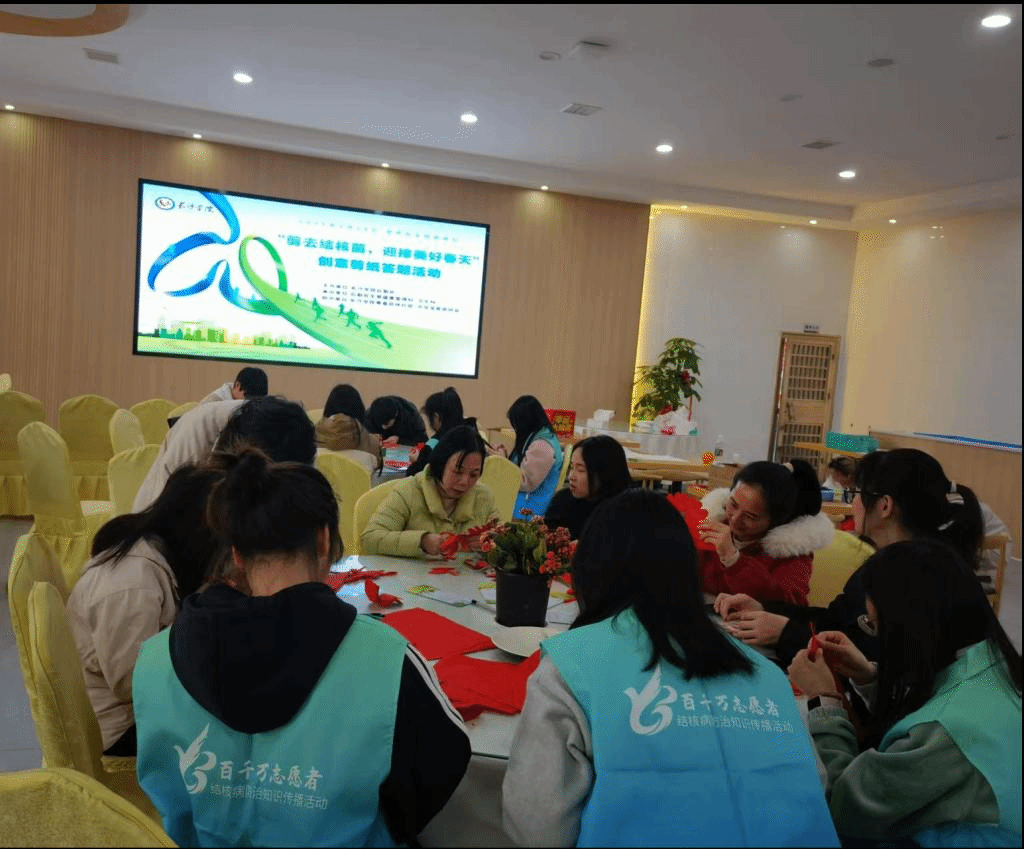 3月18日下午,在教职工食堂里,一场融合了传统艺术与知识传播的创意剪纸答题活动吸引了众多师生参与。活动初,青春同伴社的志愿者们为每组参与者发放了结核病防治知识宣传册,并进行了简短而有效的知识普及。随后,剪纸协会的志愿者学生们通过提问结核病防治知识题目,引导参与者选择心仪的剪纸图案或字体,大家在动手剪纸的过程中,不仅体验了传统艺术的魅力,还深入学习了结核病防治知识。活动中的抽签答题环节更是激发了大家的参与热情,完成作品的参与者纷纷参与抽奖,赢取精美纪念品,现场气氛热烈而欢快。