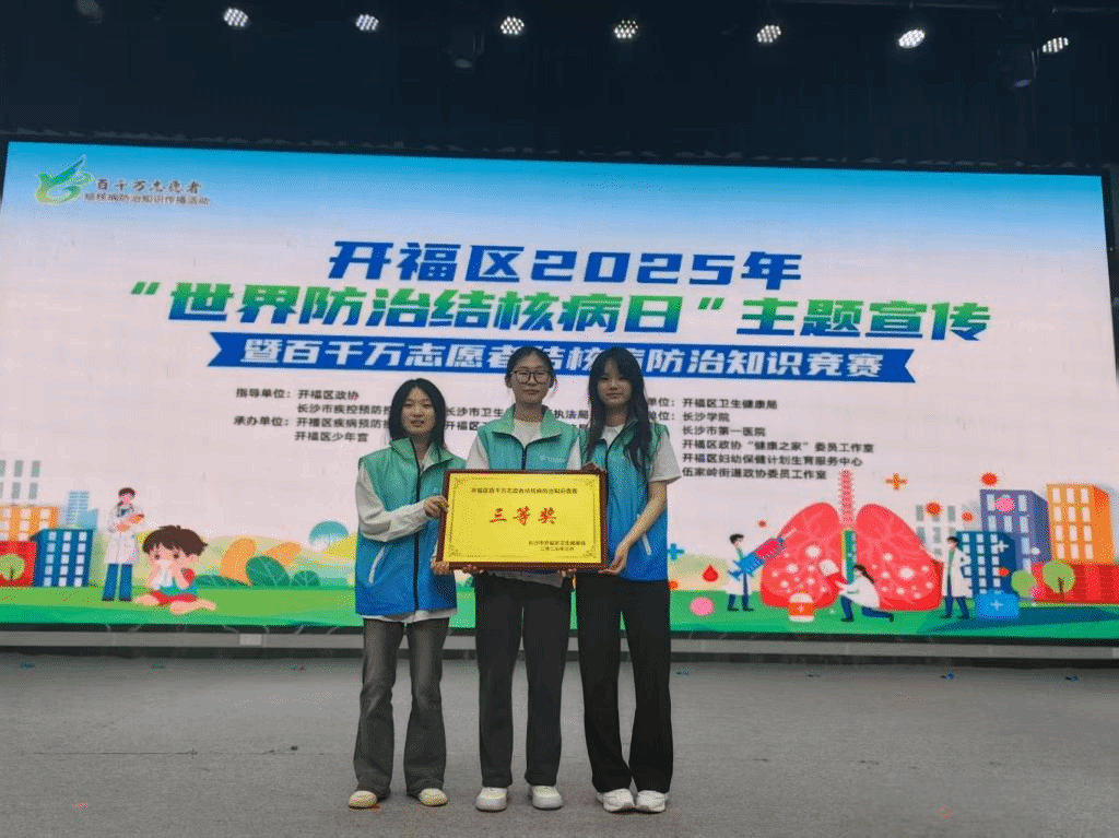 3月12日至3月21日,我校积极组织学生参加开福区2025年“世界防治结核病日”主题宣传暨百千万志愿者结核病防治知识竞赛活动,最终我校代表队在20支志愿者队伍中脱颖而出,以排名第四的优异成绩荣获三等奖。