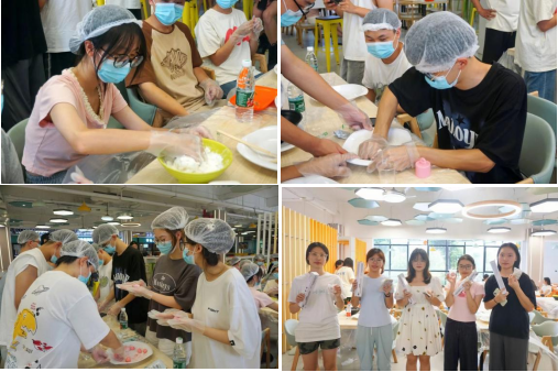 9月10日下午,第一食堂内,来自各学院的6支队伍“全副武装”,戴好口罩、手套和头套,和面、捏面皮、包馅、压模,开启了自制月饼“大决战”。每支队伍需制作完成15个冰皮月饼,用时最短、月饼颜值最高的将获得胜利。经过激烈的角逐,由电信院和材环院组成的“萧亚轩补习班”队获得冠军。