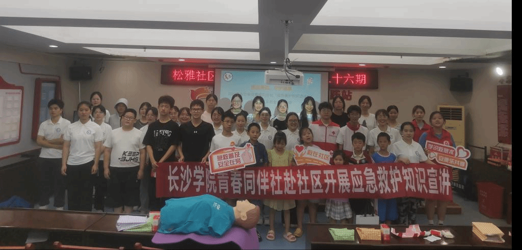 沉入社区,普及急救,护佑生命。炎炎暑期,在后勤处指导老师闫娜娜、龙琴的带领下,青春同伴社“急救知识进社区”社会实践团队依次在长沙市长庆社区、松雅社区、洪山桥社区、中南汽车世界社区等开展了近半个月的急救知识宣教暑期“三下乡”社会实践活动。