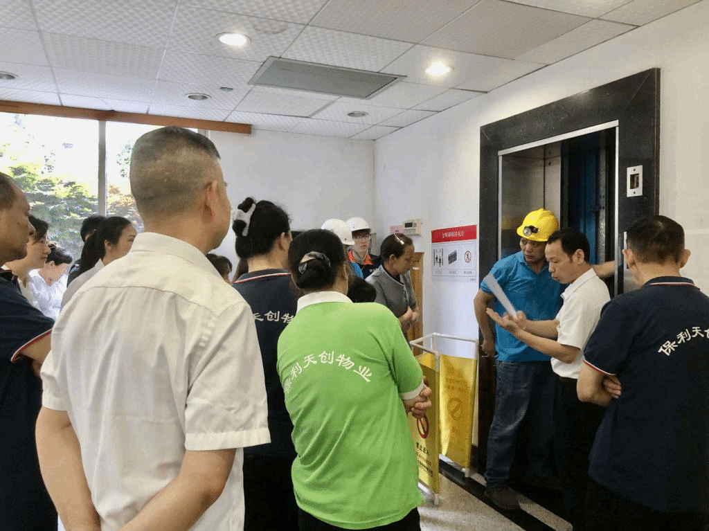 培训后,开展了以“以练为战,防患未然”为主题的电梯应急演练。技术人员详细讲解了应急演练方案、应对电梯突发状况的处置方式。演练活动模拟电梯困人故障、被困人员呼救、现场实施救援、后期恢复运行四个环节。本次演练按照电梯应急救援演练方案进行,消息准确传递、人员快速到位、过程紧凑完整,不仅提高了物业公司人员对应急情况的处理能力,也增强了各部门的协同作战能力。