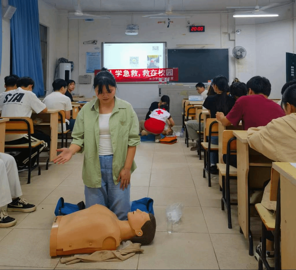 具有多年红十字授课经验的两位老师再次带领学生复习了成人心肺复苏(CPR)操作、自动体外除颤仪(AED)的使用,并对所有选修本课程的学生进行现场考核,后期将为考试合格人员发放证书。现场通过考试的学生李昊霖说:“选修这门课是我做出对的选择,以后如果有这种紧急需要救援的情况,自己也能很好地去帮助别人了。