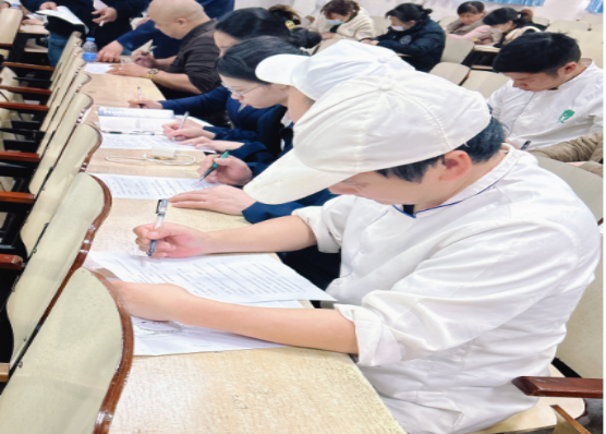 此次培训邀请了长沙市永景餐饮管理有限公司周杰总监进行现场讲授。他从食品安全ABC类管理法则切入,对从业人员的日常行为规范、接触食物的管理、食品留样、食品添加剂管理、清洁与消毒等方面作了全面细致的讲解与互动,并就消防基础知识、消防火灾的预防、油锅起火的灭火方式以及消防器材的正确使用等内容作了深入浅出的讲解及演示。会上,还对所有参会人员进行了考试考核。