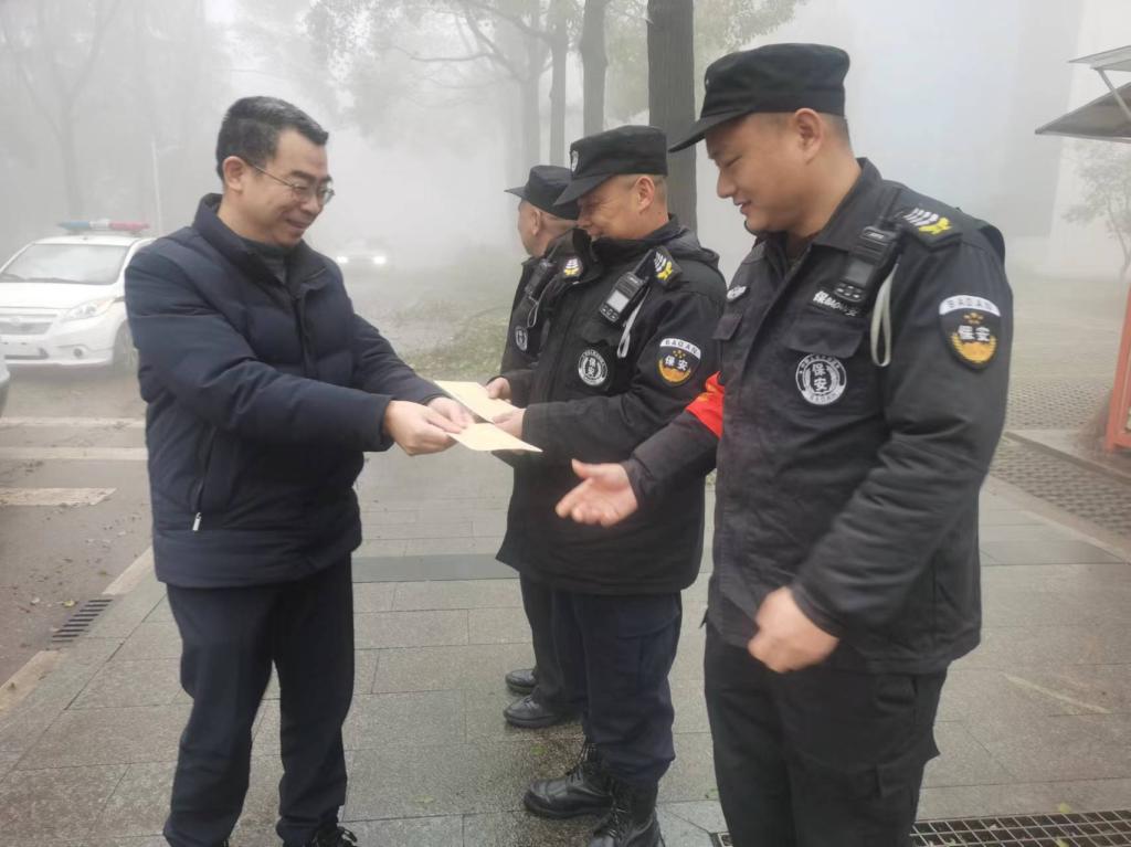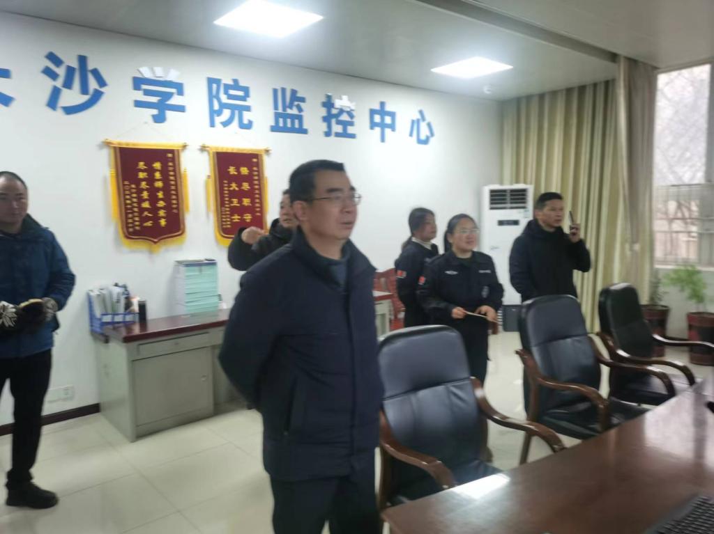 何利华带队先后走访了水电总值班室、各大校门门卫室、监控中心以及各教学宿舍楼栋值班室,与员工们亲切交流各岗位的工作情况,感谢大家在对抗这次雨雪冰冻恶劣天气的辛勤付出并致以节日的问候。一声声祝福和关怀让寒假在岗值班人员倍感温暖。