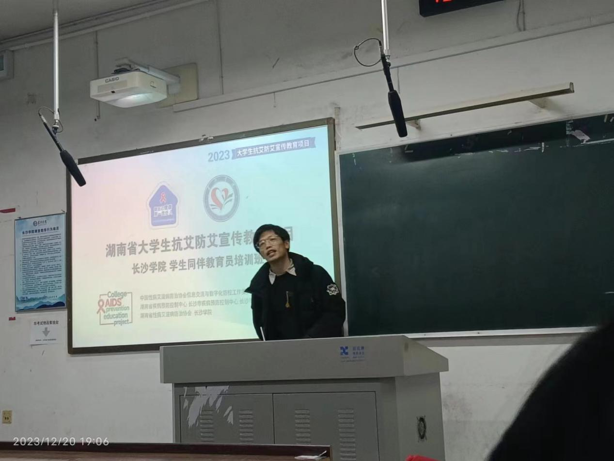 为进一步落实和推进大学生艾滋病常态化宣传教育,12月20日,湖南省大学生抗艾防艾宣教项目同伴教育员培训班在涵虚楼C3101顺利开展,活动由湖南省疾病预防控制中心、湖南省性病艾滋病防治协会、长沙学院后勤处主办,长沙学院青春同伴社承办,我校50余名学生参加培训。