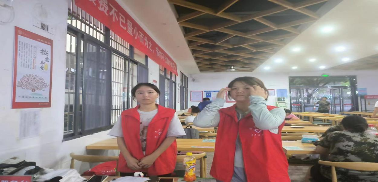9月16-22日午、晚餐时段,学生志愿者走进食堂,文明劝导。在四个学生食堂,他们引导并督促同学们节约粮食,有序排队、文明就餐、坚持光盘!