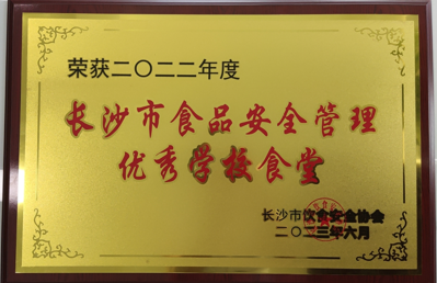 继我校第四食堂(长沙市任重餐饮管理有限公司托管)获评2021年度长沙市“食品安全管理优秀学校食堂”之后。我校第一食堂(长沙市永景餐饮管理有限公司托管)从60多家餐饮企业、90多个门店中脱颖而出,获评2022年度长沙市“食品安全管理优秀学校食堂”。并在2023年长沙市饮食安全协会第二届第二次会员大会暨2022年度餐饮行业评优评先表彰大会上进行了表彰。