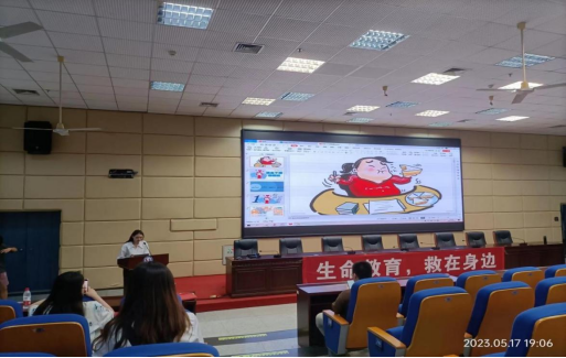 为深入贯彻党的二十大精神,纪念第76个“5.8”世界红十字日,5月17日晚上19点,“生命教育、‘救’在身边”博爱周同伴教育活动在致远楼学术报考厅开展, 此次活动由后勤处主办,造血干细胞宣传服务队和应急救护与健康协会承办。后勤处闫娜娜、李春艳两位老师出席活动,现场观看学生一百余人。