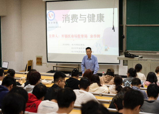 在针对学生食品安全知识讲座中,章学辉所长从询问同学们喝奶茶的频次引入,为大家详细分析了奶茶美味但不能多喝的原因,引起了同学们的重视。并通过实际案例分析食物中毒与个体性差异过敏的区别,分析未按时吃饭作息及佩戴美瞳的危害等。另外,讲座中还提到了“动态清零”的意义及党的二十大报告解读,同学们受益匪浅。
