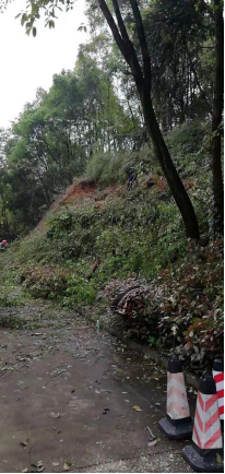 因连降大雨,3月27日学校龙潭湖西面突发山体滑坡,造成路面阻断,山林树木倾倒,道路堵塞。为防止山体再次出现滑坡,确保过路车辆和师生员工安全。后勤党总支教工一支部书记、维修科科长李保钢带领维修科的同志们,第一时间来到现场,及时对道路进行封闭,设置封道标志标牌。并向上级主管部门报告,请学校土木学院专业人员现场勘测,对可能存在隐患的地段进行排查。随后组织人员进行清理及加固山体护坡等工作。