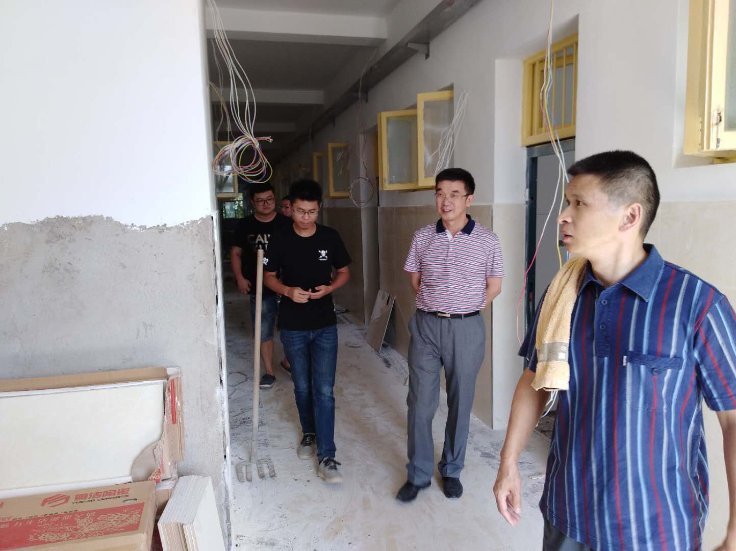 2018年暑期的炎热,挡不住后勤部门工作的热情。学校各楼栋宿舍的提质改造工程在如火如荼的进行。后勤处维护维修科、水电管理科、物业管理科等科室的同事们在余文龙处长,吴桢婧书记的带领下,一直坚守在各维修工作第一线,战高温、斗酷暑、赶时间、抢进度,顶着烈日在各维修楼栋巡查监督工作的进度、质量与安全。在日常巡查的基础上,余文龙处长、盛涛副处长还时常召集各工地负责人与监理进行座谈,询问工作上存在的问题,并结合巡查发现的情况,及时提出解决方案。周明侠副校长更是高度关注暑期维护维修项目的进展情况,时常亲自到工地巡查,每周召集后勤处、施工单位和监理单位召开进度调度会,及时解决进度滞后及施工过程中存在的安全隐患,同时,要求施工单位确保进度、确保质量、确保安全、确保规范,要求后勤处及监理单位加强监管,确保暑期维修工作按质按时完工。目前,各楼栋维修工作仍在紧锣密鼓的节奏当中进行。