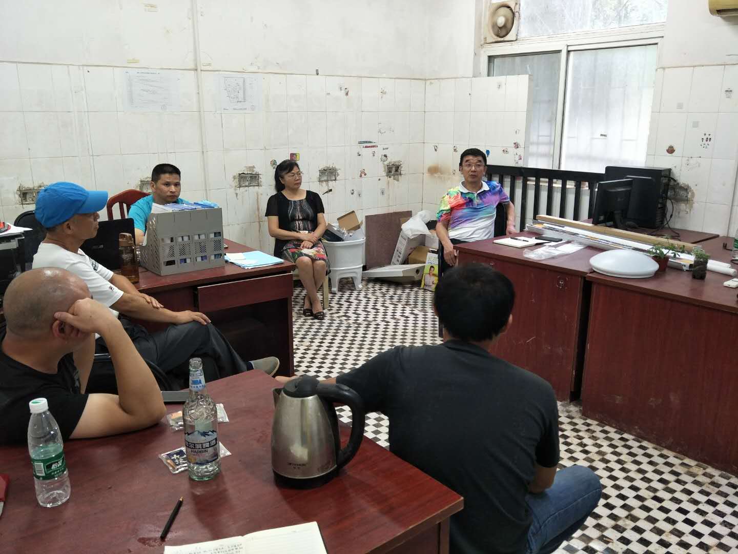 维修科同志在现场监督维修工程