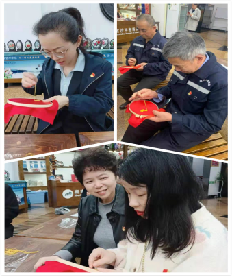 两个小时的参观,党员同志们兴致极高,每到一处都会停下脚步相互交流一番。参观完毕,大家跃跃欲试,拿起工具,在绣师的指导下一针一线地亲身体验起“绣娘”来。