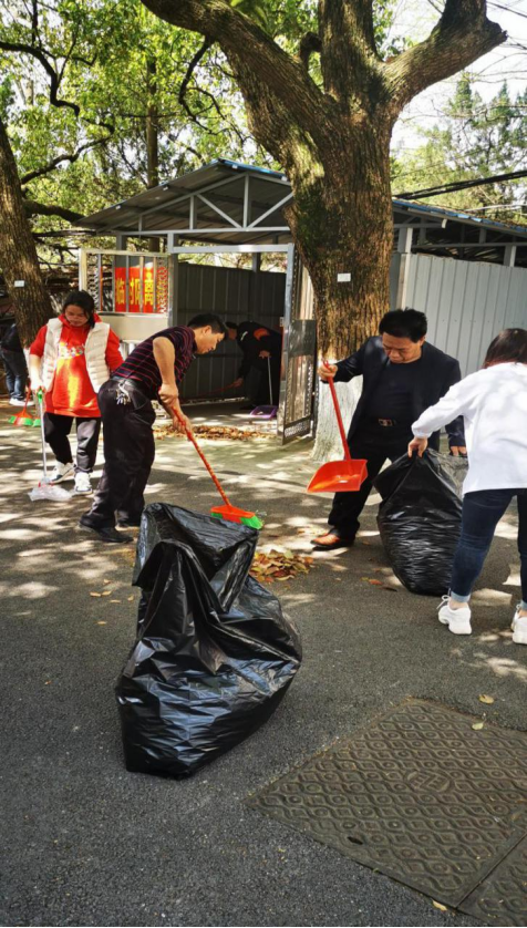在进行简单的任务分配之后,全体党员对洪山园区的环境进行了彻底清理。同志们放弃中午休息时间顶着大太阳积极清理垃圾,不怕脏,不喊累,相互配合。没过多久,整个园区焕然一新,林荫路、草坪深处均已不见塑料袋、瓜皮纸屑的踪影。
