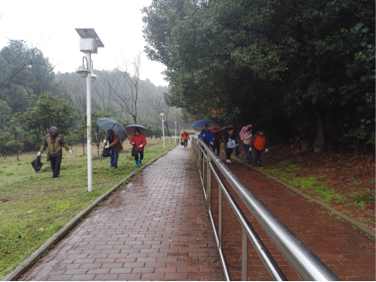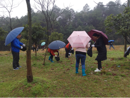 后勤的全体党员冒着雨、打着伞、拿着垃圾袋,用小小筷子做工具,捡拾路边、草丛中的垃圾,从学校龙蟠路与学府华庭步行道三角花坛交汇处开始,一直到学府华庭西面的整个草坪的白色垃圾清理干净。大家似乎忘了天气的寒冷,不停地弯下腰捡垃圾,捡拾的不仅局限于白色污染垃圾,还包括地板上的纸屑、风雨过后的残肢枯叶、草丛中的塑料袋等都被一一清理,活动还吸引了两位非党员参加。